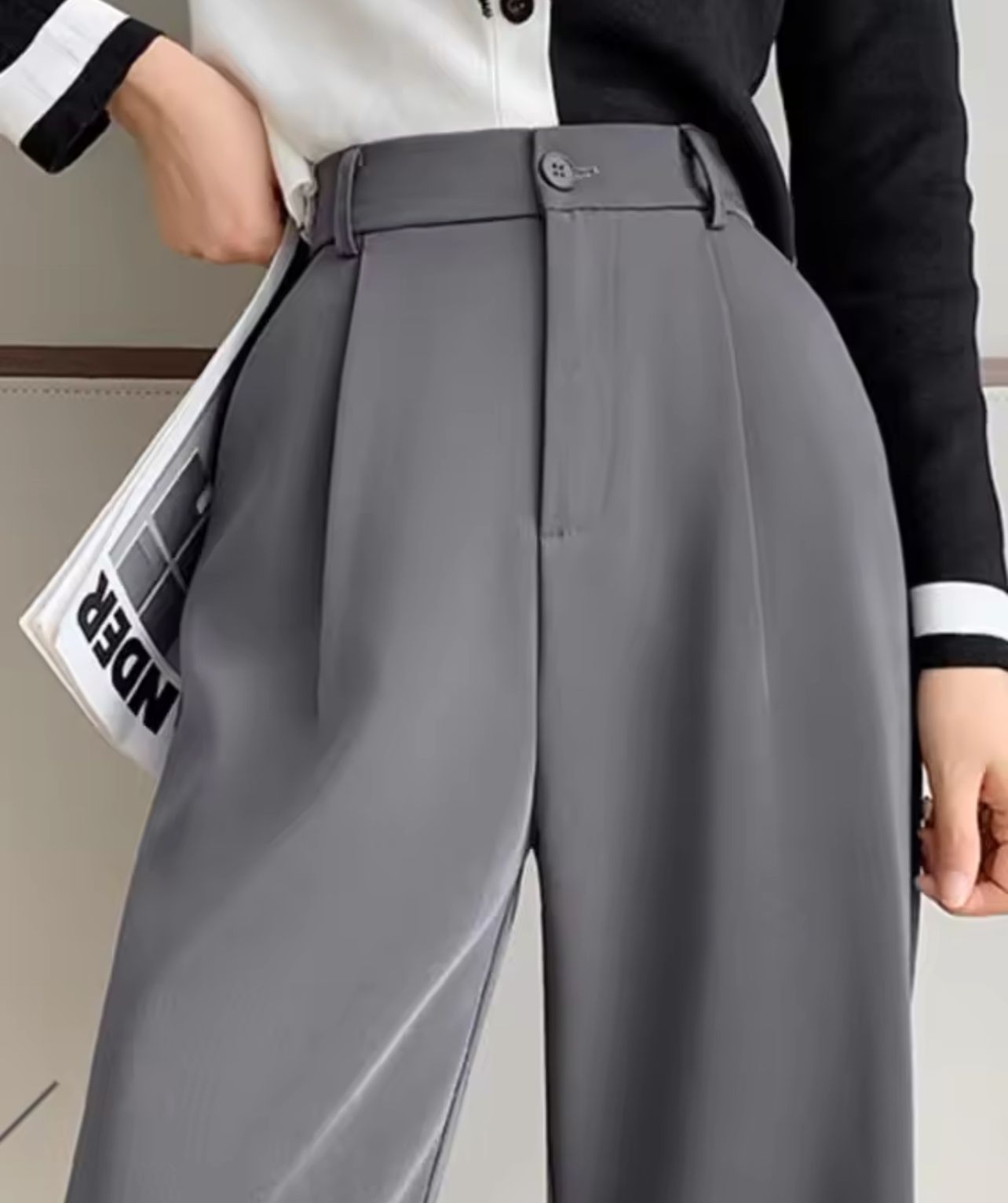 A calça de alfaiataria na cor chumbo é a escolha ideal para quem busca sofisticação e elgância. Ela apresenta um corte impecável, com pregas na frente, passante para cinto e bolso faca na frente, tem comrpimento longo e shape reto.